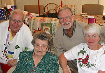 | Edythe Johnston, grandson Bruce Beisler and wife Nikki (right), and Pete Mitchell's wife Chris (we missed you, Pete!). | ||||||||||||||