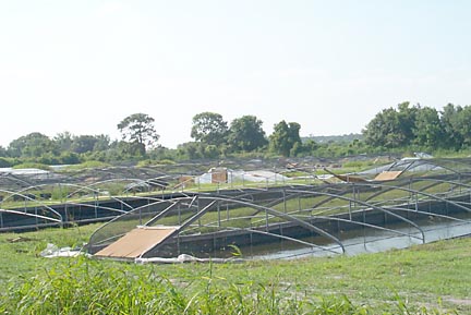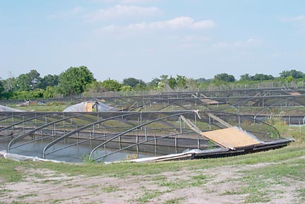 | There are lots of outdoor fish ponds, some covered, some not. |