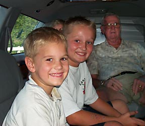 | Jeannie drove the Grants and Johnstons in the new limo for its first real test drive. Of course, Missy came along, dressed in her finest fish-patterned outfit, with cut-outs of fish on the windows, as well. |