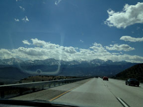 The trip was sunny: no rain or snow, though you can see the snow-topped mountains in the distance.